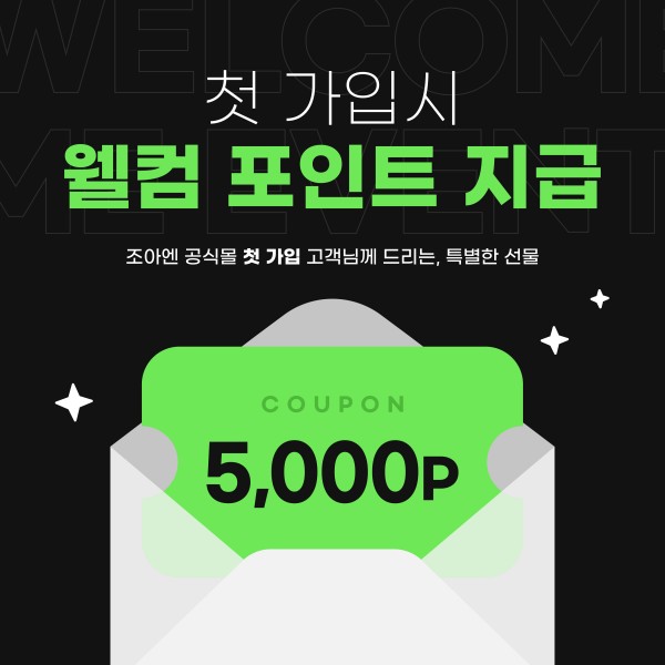 공지사항 조아엔 공식몰 첫 가입 시, 웰컴 포인트 5,000P 즉시 지급!